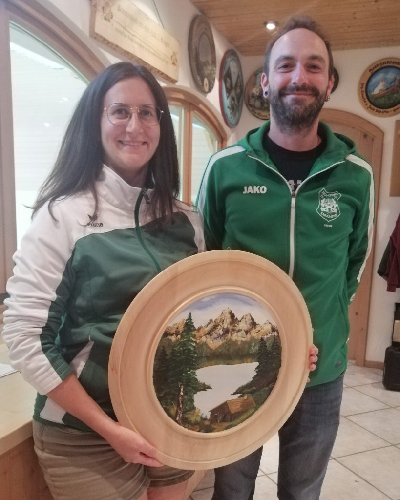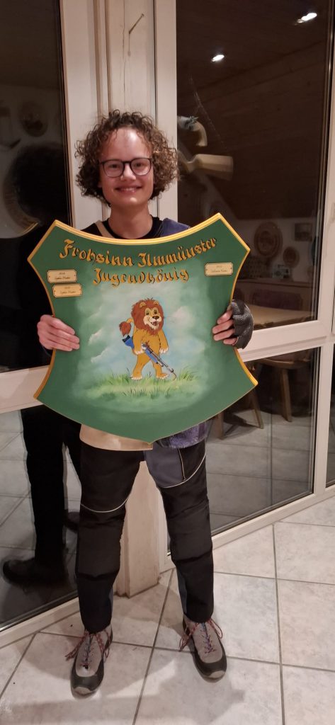 Als Höhe- und Schlusspunkt des Vereinsjahres wurde schließlich die Endscheibe ausgeschossen. Mit großer Spannung erwarteten die Schützen am Ende des Abends die Bekanntgabe desjenigen Schützen, der den besten Schuss abgegeben hatte. Mit einem sehr guten 13,6 Teiler war Maria Haberhauer nicht zu schlagen. Sie verwies Anna Haberhauer (17,4 Teiler) und Valentin Kainz (31,0 Teiler) auf die Plätze und freute sich über den Gewinn der aufwändig handbemalten Scheibe.